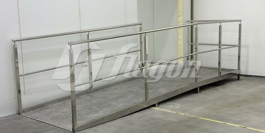 Rampa e corrimão de inox Acabamos de confeccionar e instalar essa rampa e corrimão de inox para uma empresa do ramo alimentício, essa rampa com corrimão de inox foi feita para uma câmara de refrigeração.